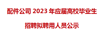 根據(jù)配件公司2023校園招聘實施方案和有關(guān)制度要求,確定鮑萌萌等14人(名單附后,以姓名首拼為序) 為我公司擬聘人選,現(xiàn)面向社會進行公示。公示期五天,自2023年5月29日至2023年6月2日止。 監(jiān)督電話: 0551-63689007 來信地址:合肥市蜀山區(qū)......